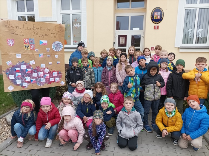 V pátek si žáci ze základní školy připomněli nadcházející výročí státního svátku Den samostatnosti československé republiky. První dvě hodiny se žáci dozvěděli plno zajímavých informací, zhlédli výuková videa, vyhledávali informace na internetu, namalovali vlajky naší republiky, vytvořili koláž, kde namalovali mapu Československa, vybarvili a nalepili státní symboly, napsali na kartičky základní informace související s tímto svátkem. Po velké přestávce se žáci rozdělili do pěti družstev a šli plnit úkoly, které pro ně byly přichystané formou naučné stezky v okolí zámku. Stezka byla zakončena u národního stromu, kde ještě žáci vyvěsili zalaminované kartičky s informacemi. Celý den probíhal hravou formou, přičemž se děti dozvěděly plno nových a důležitých informací. Všichni si den moc užili.