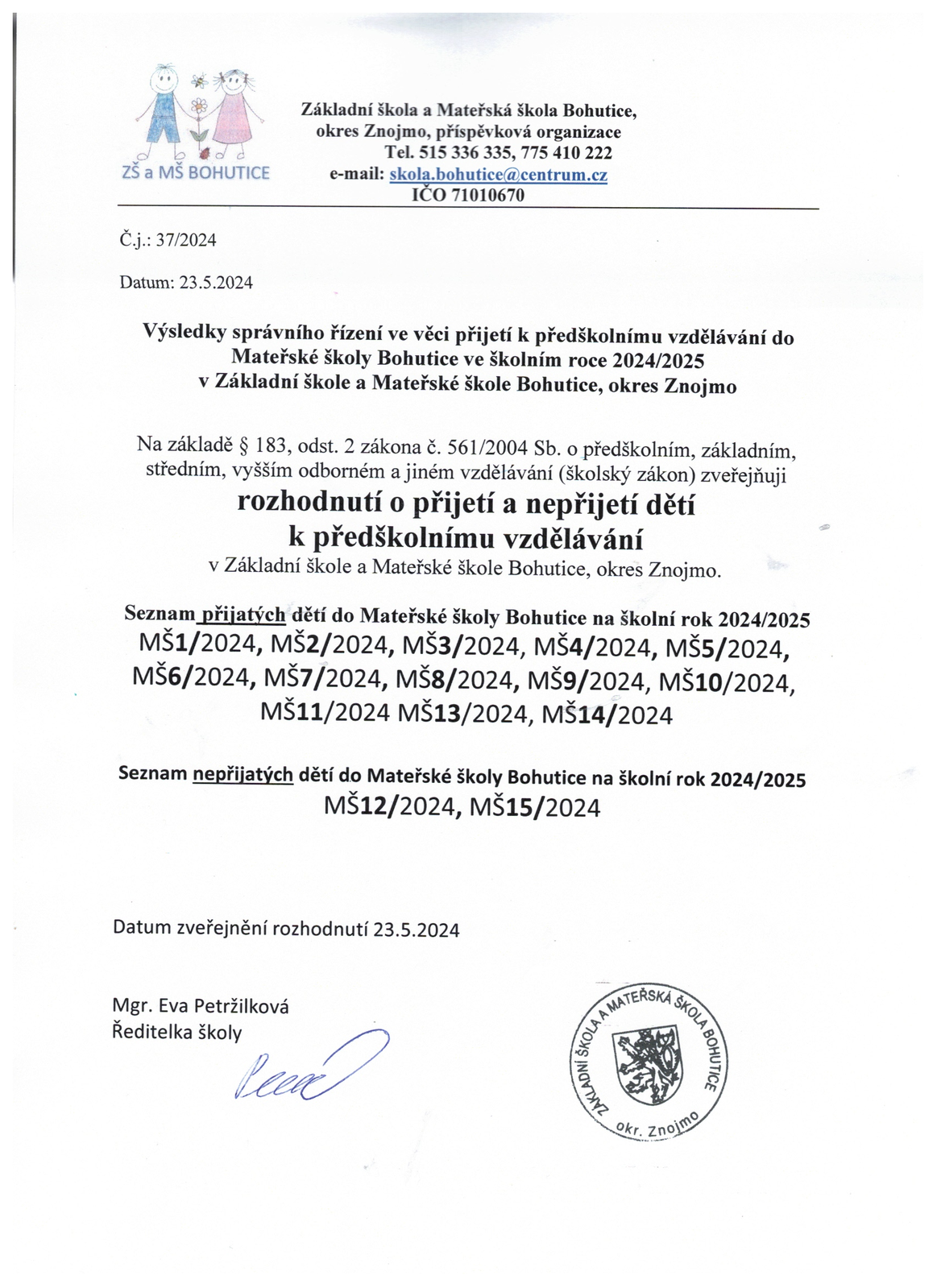 Úvod > O nás > Aktuality > Výsledky zápisu k předškolnímu vzdělávání na rok 2024/2025