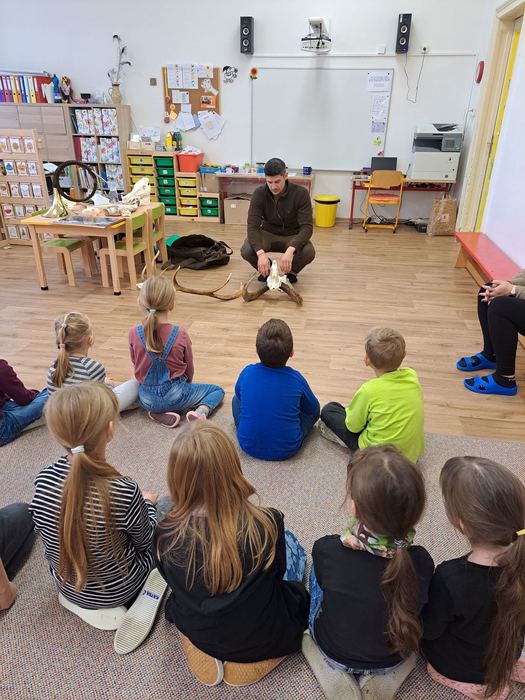 Ve středu 9. 11. 2022 v naší škole proběhla beseda s panem hajným z obory z Moravského Krumlova. Děti se dozvěděly spoustu nových informací o lese a o zvěři. Pan Machan poutavě vyprávěl a odpovídal dětem na dotazy. Dětem se líbily i trofeje, které s sebou pan hajný přinesl.